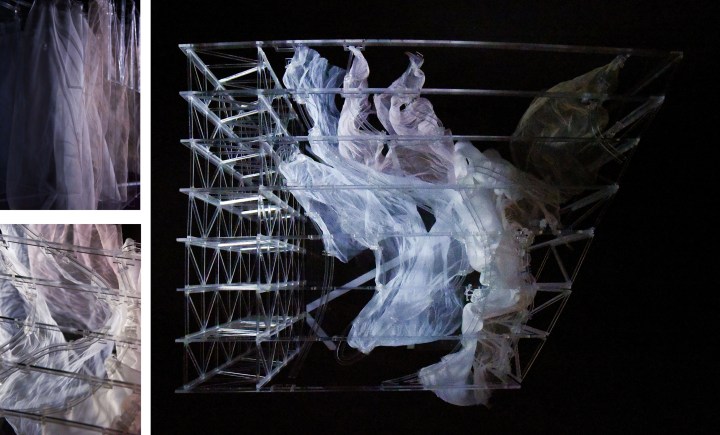 The print informs the curtains. They act as both spatial dividers and mediums of interaction. Lighting tests revealed how fabric opacity changes depending on direction and intensity of illumination, producing moments of concealment and revelation.