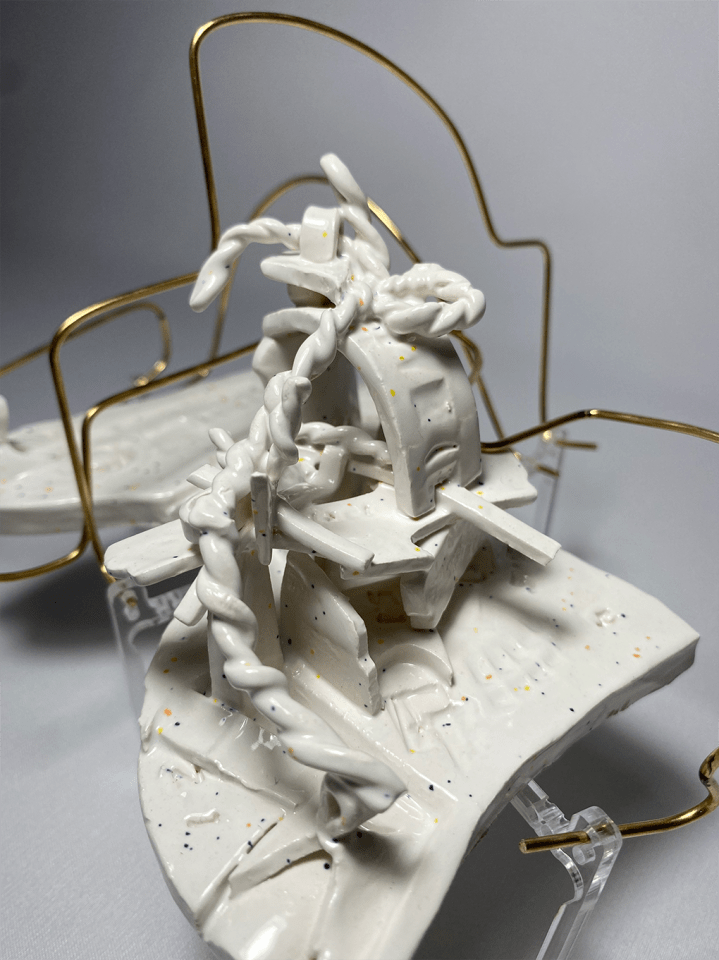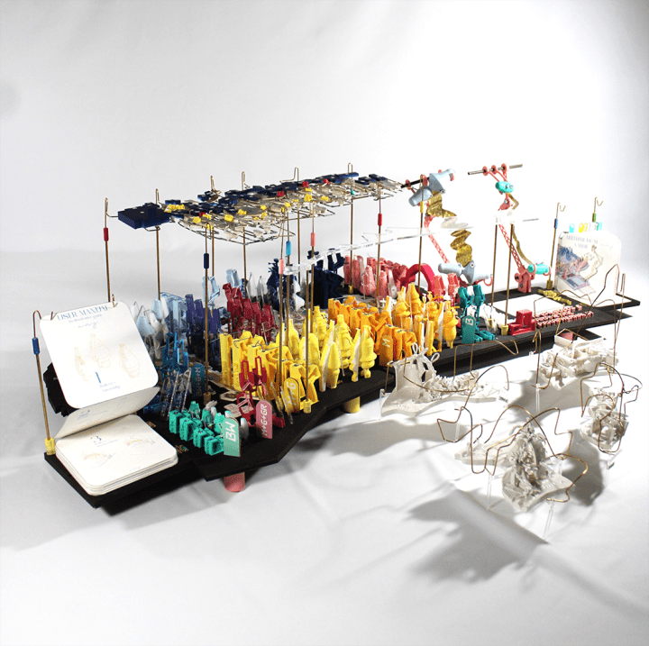 Set on the grounds of Hastings Land Based Fishing Fleet | Port Hastings, the project concentrates on the geometry and arrangement of the site, posing algorithmical conditions in the way it has been surveyed. The programme concerns a ‘Boat Building & Integration Centre’ explored via the ‘Translation & Transposition’ of its physical objects and the somatic relationships between them, culminating into a speculative building approach. The project argues for the presence of imbued knowledge within the transposed colour coded transcript – dimensionalised through the derivation of a bespoke 271 tools and uses. This is a parametric interpretation of the object relationships established, with each tool embodying a numerical quantification of such relationships and synonymously becoming a repository of site’s hidden calculus – seeking to extract the typologies of structure it particularly proposes. The research methodology ‘Translation & Transposition’ and its toolset manifestation explored through the mediums of clay and light, sets forth the proposition that this particular procedure can become a tool widely used in architectural practices as part of the initial stages of design inception.