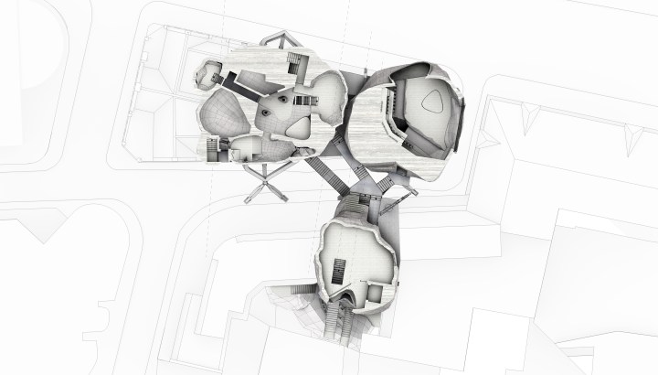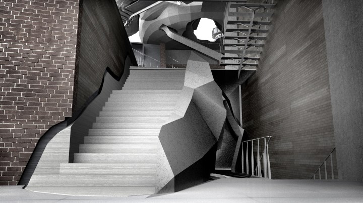 Once encountering the uncanny rock elements forming the program of the theatre, spatial expectations are renewed, taking advantage of the idea of timelessness of the grotto and what it represents in relation to the history of architecture and Mankind. The grottoes in this project invites the curious citizen to investigate its internal world, revealing progressively the programs; a progression perceptible in the intensifying of the faceting of the rock elements which the users experience when they come across them and touch them on their path to the main performance stage.