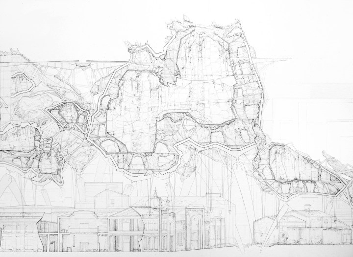 She proposes a large structure layering over Brighton, thickening it, providing an alternative route whilst accommodating programs of the buildings below. This geological shift runs through the entire city, spawning three realms for urban visitors to navigate, the surface, the original city, and a middle realm that negotiates the other two, inventing a territory ambiguous to weather it is nature or culture. The ambitions of the project address multi-dimensional spatial organisation, access, navigation, program, character, materiality, and structure, challenging what you cannot normally do in a city because its networks introduce boundaries in favour of effortless experiences.