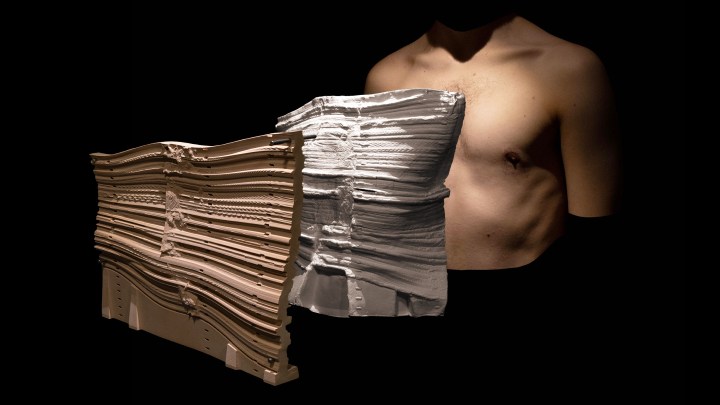 An exploration into pressing, coalescing, and layering of bodies, rock and architecture.