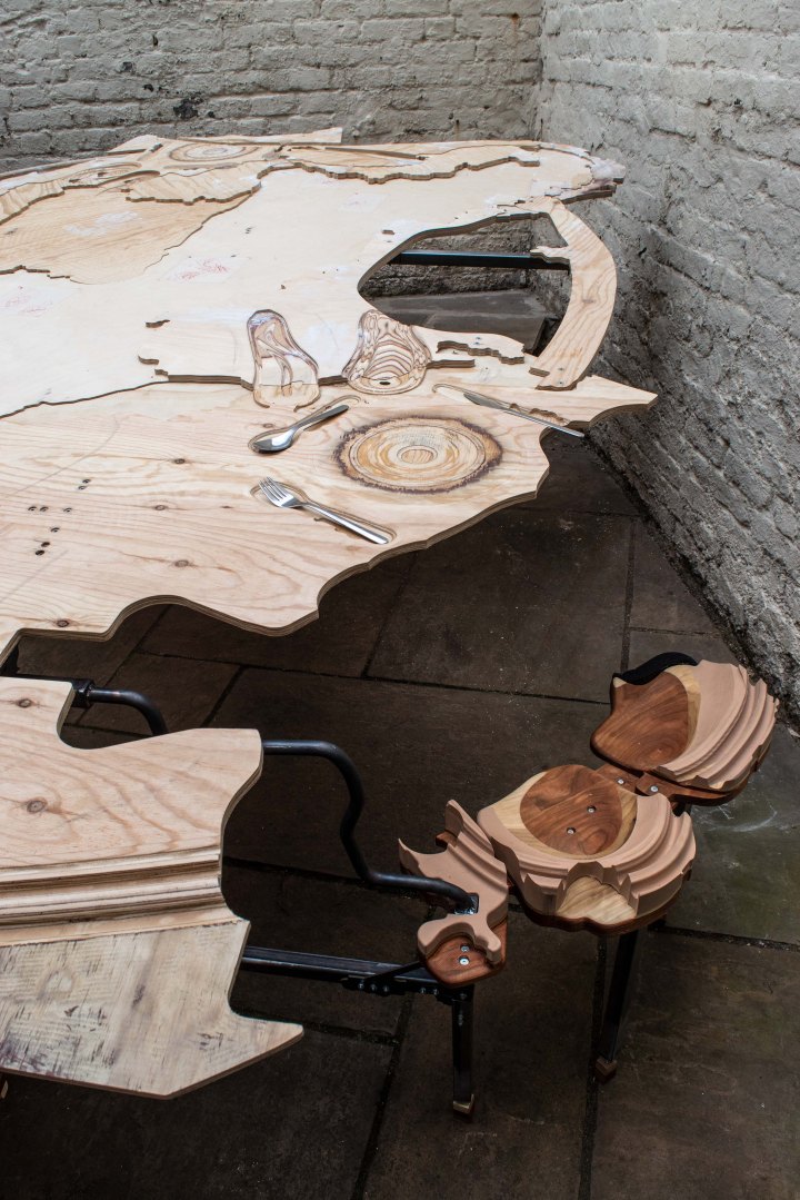 A dining table/climbing wall/ architectural model allows the designer to use their body as a design tool. This transports them to a faraway site location and becomes a corporeal simulation device.