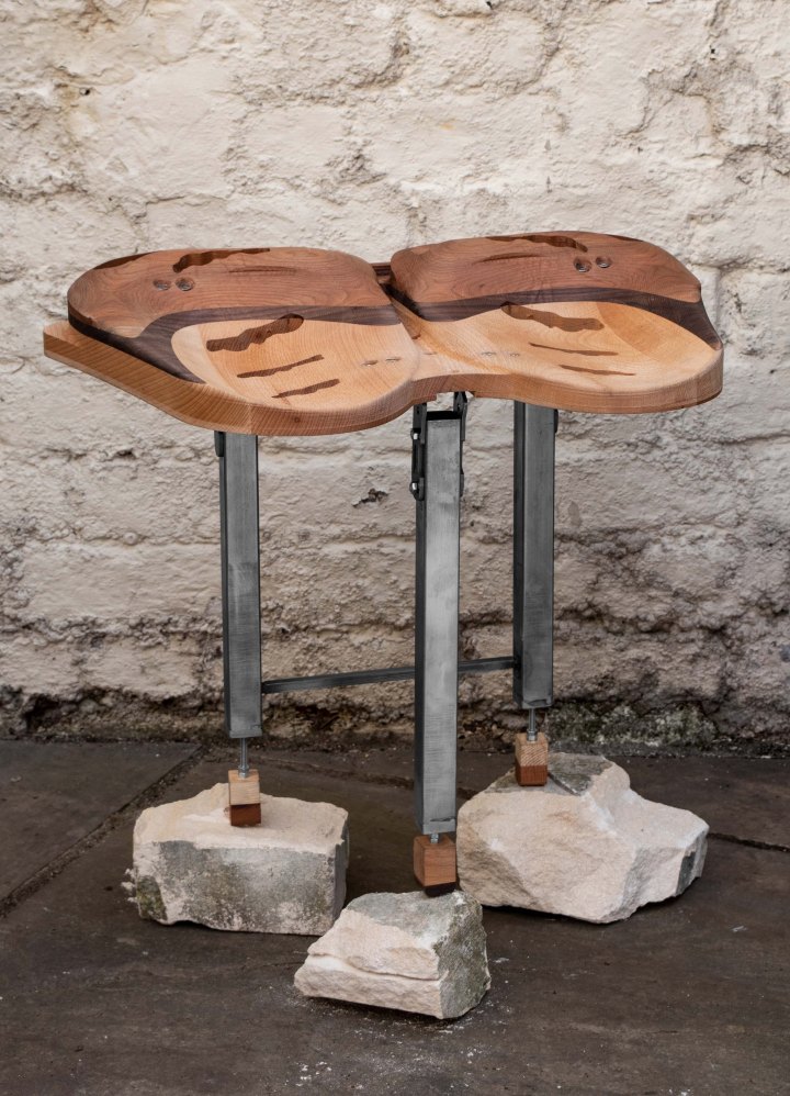 The profile of a hand the impression of the foot and the buttock all coalesce to produce a multifunctional piece of furniture/climbing apparatus that is a stool, foothold and hand hold depending on its orientation.