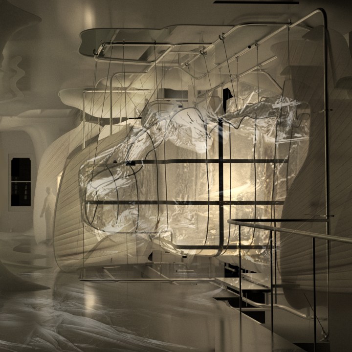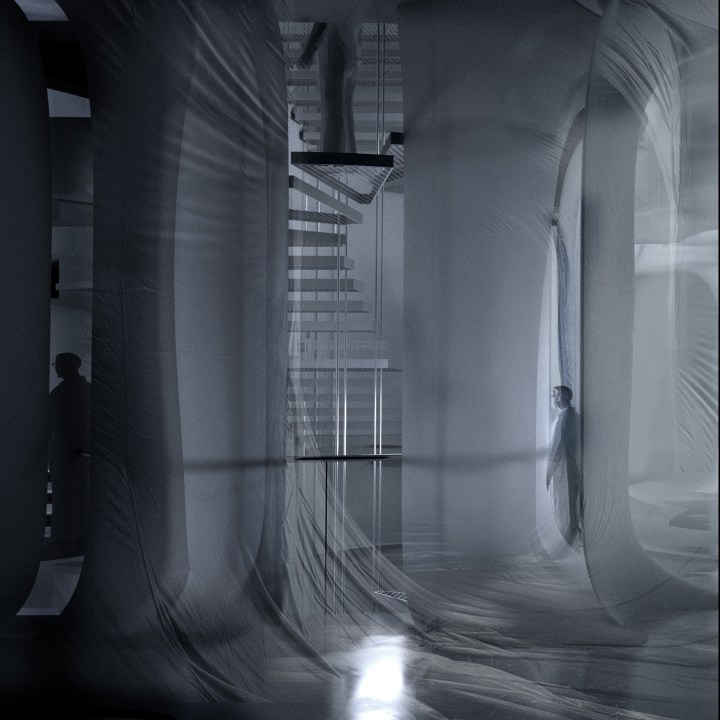 The concept of the project was inspired by visiting the site in the evening, where reflections of light were observed on the neighbouring street walls. These reflections were symptomatic of events happening in unknown origins around the city. The spatial experience of Brills Lane was dependent upon an event elsewhere – highlighting a previously unseen ecology; where spatial experiences and events are fundamentally interconnected with one another. Typically in a Hotel, the guest’s spatial experience is dependent upon its staff, however this dependency is normally unseen. The research explores an architecture of negotiated awareness; heightening one’s sensitivity to another’s presence in space. Taking form as a Hotel on Brighton’s seafront, the project investigates the front-stage/back-stage relationship between guests and staff, creating a curious spatial mediation between them. Through the manipulation of layers, draperies and multiple transparencies; presences from unknown origins are revealed and concealed; causing you to question your exaggerated impact on another’s phenomenal experience.