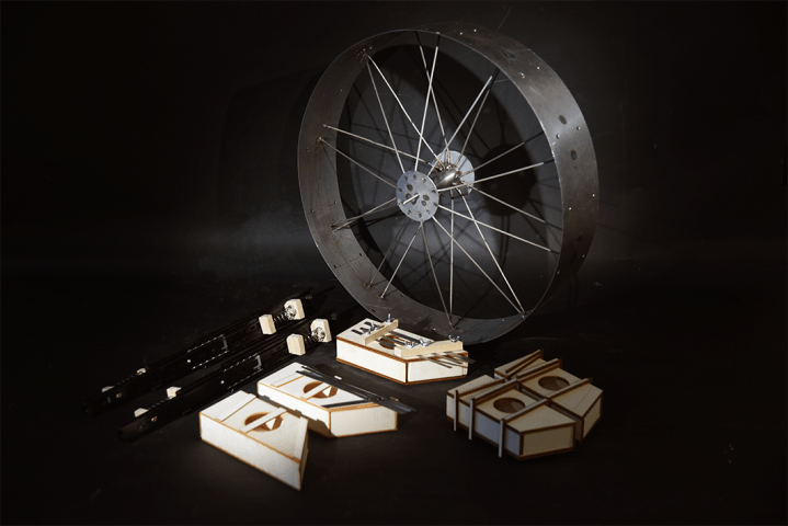 The image presents my exploration of ground texture resonance through various models. I meticulously crafted each, experimenting with materials to optimize interaction with the steel wheel instrument. These resonators harmonize with the instrument, translating ground textures into musical notes.