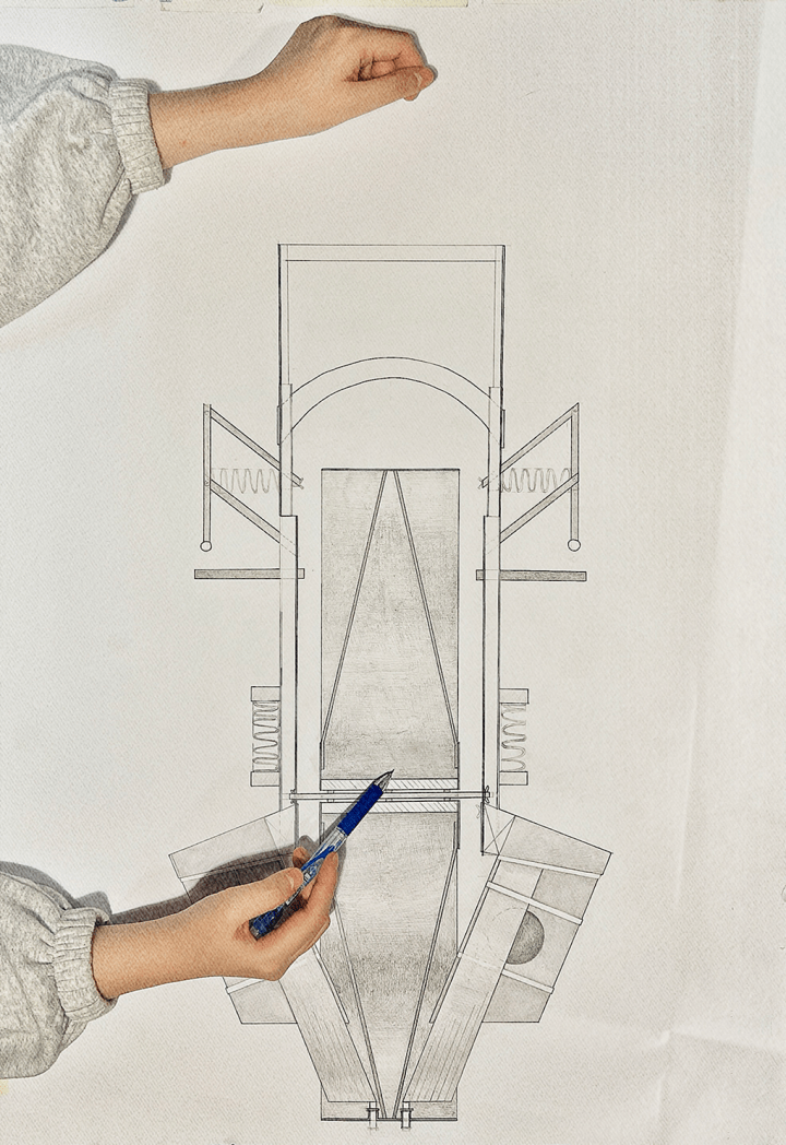 During P1, I delved into the fascinating resonance of ground textures. I began with a curiosity about the influence of local features on the evolution of musical instruments. A visit to Hastings prompted me to explore methods for shaping sound and designing instruments based on ground conditions. This inspired the creation of the TerraTune, a wheel-based instrument capable of ‘reading’ and playing the resonance of the ground’s bumpiness. I then carried my exploration into P2, moving beyond surface conditions to uncover the potential messages carried within. The language of tactility and resonance was further developed in my building, Sensory Symphony Space for the Visually Impaired, a nightclub designed to allow people to relax safely and with a sense of security. To achieve this, I developed a system of informative guiding handrails with various textures and forms across different spaces in the building. The concept of creating a sense of continuity and familiarity between people and spaces is demonstrated through the blend of large-scale building structures and small-scale features like furniture and handrails.