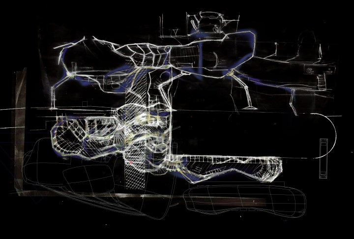 A transparent speaker device suspended in a tensegrity inspired acrylic frame. It converts a user’s pulse into low-frequency vibrations, using internal rhythms to explore resonance as a spatial language and sensory interface.