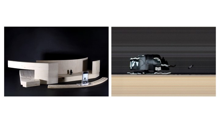 The project evolves through ongoing experimentation between photographing motion and developing architectural plans. Strip photography captures distortions linked to speed and rhythm, while panoramic images provide continuity and spatial context.