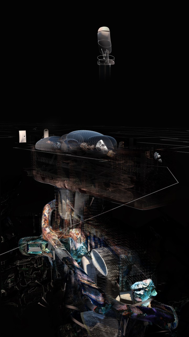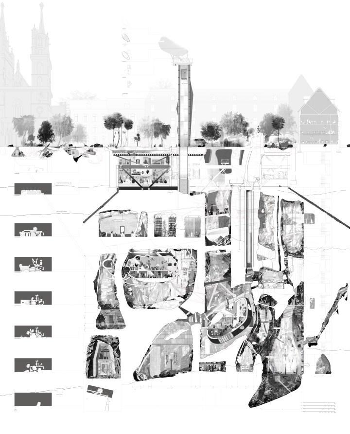 The project moves from research into proposal through the design of a Dilettanti society. The structure facilitates the advancement of transdisciplinary knowledge as citizens descend through the structure, new knowledge is both gathered and shared this is enhanced through three principles: the storage advancement and dissemination of knowledge.
