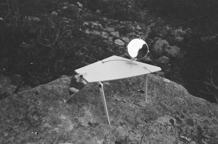An interest in the horizontal surface develops into a language of strategically shifting planes and spaces built around table tops. Layering and overlapping geological surfaces start to build up the satellites. Photographic media (camera and camera-less) is utilised to capture and communicate the ambiguous and complex realm of their presences.