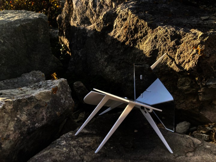 Light leaks through the corners and edges where the junction between floor and wall is interrupted. Pieces of the satellite find themselves exported into the site to perform new functions.