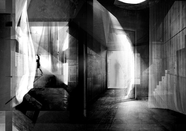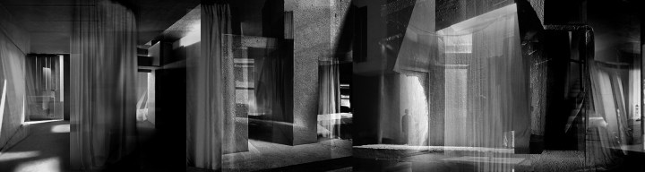 ‘The Embassy of The Anonymous’ explores an architecture of emotions – exploring the possibility of fabric in curtains as an enclosure and tool to reveal and conceal privacy. Starting from the blanket I have owned for over two decades, this project explores how the fabrics could function as a device to articulate the subtle psychology of fear and comfort as an extension of my personal experience with the object. Curtains mediate the residents’ presence with light/shadow and soft wind – constantly breaking and establishing the threshold of privacy. Depending on the density of the daylight and fabric textures, the project provides different atmospheric experiences explored by a wide range of physical models and collages. Located in Brussels, a hub for the European Union, the programme suggests an embassy for international diplomats working at the EU who feel vulnerable and lost with their national identities. Focusing on the emotional aspects of the building, the project proposes a residency for foreign diplomats to settle down in Brussels.